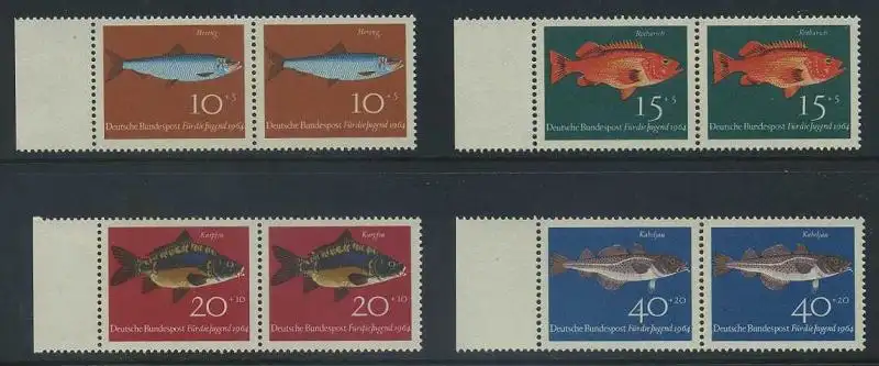 BUND 1964 Michel-Nummer 0412-0415 postfrisch SATZ(4) horiz.PAARE RÄNDER links