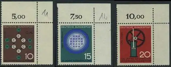 BUND 1964 Michel-Nummer 0440-0442 postfrisch SATZ(3) EINZELMARKEN ECKRÄNDER oben rechts
