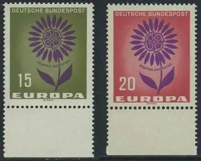 BUND 1964 Michel-Nummer 0445-0446 postfrisch SATZ(2) EINZELMARKEN RÄNDER unten