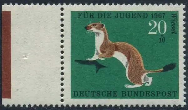 BUND 1967 Michel-Nummer 0530 postfrisch EINZELMARKE RAND links