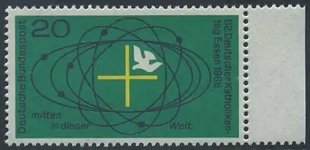 BUND 1968 Michel-Nummer 0568 postfrisch EINZELMARKE RAND rechts