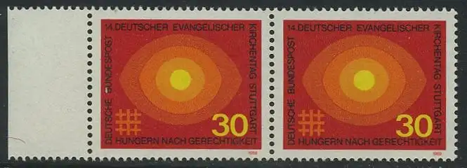 BUND 1969 Michel-Nummer 0595 postfrisch horiz.PAAR RAND links