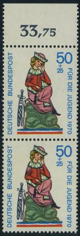 BUND 1970 Michel-Nummer 0615 postfrisch vert.PAAR RAND oben
