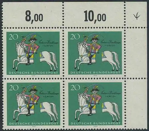 BUND 1970 Michel-Nummer 0623 postfrisch BLOCK ECKRAND oben rechts (a)