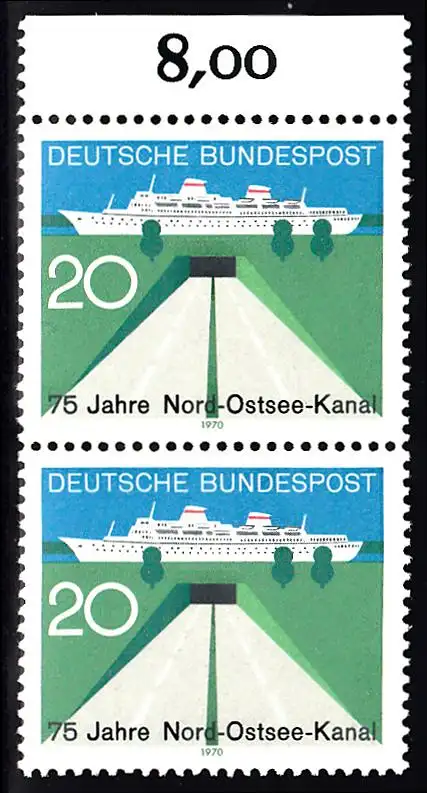 BUND 1970 Michel-Nummer 0628 postfrisch vert.PAAR RAND oben