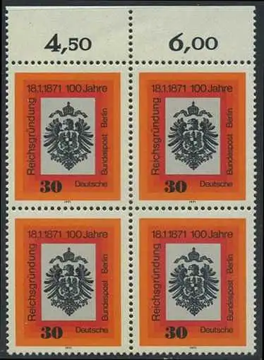 BUND 1971 Michel-Nummer 0658 postfrisch BLOCK RÄNDER oben (a)