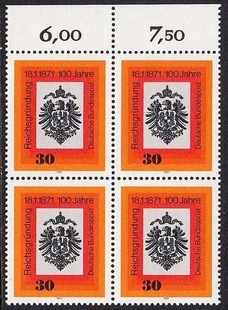BUND 1971 Michel-Nummer 0658 postfrisch BLOCK RÄNDER oben (c)