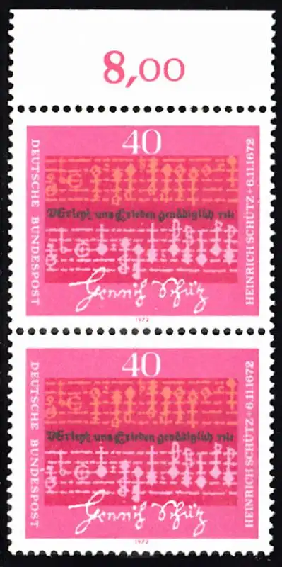 BUND 1972 Michel-Nummer 0741 postfrisch vert.PAAR RAND oben
