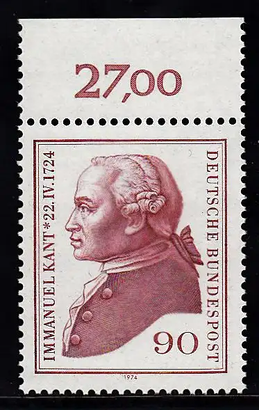 BUND 1974 Michel-Nummer 0806 postfrisch EINZELMARKE RAND oben (b)