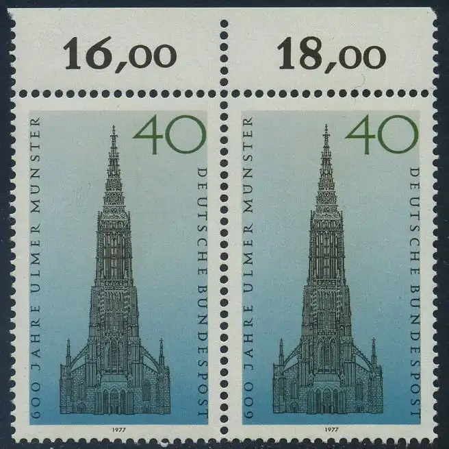BUND 1977 Michel-Nummer 0937 postfrisch horiz.PAAR RAND oben