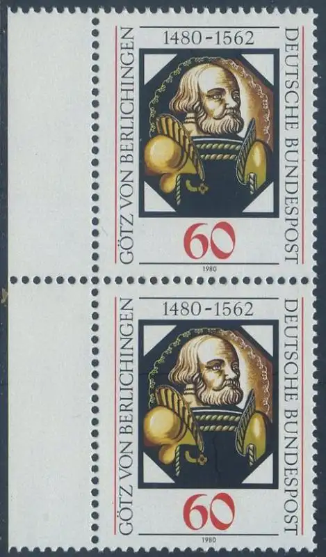 BUND 1980 Michel-Nummer 1036 postfrisch vert.PAAR RAND links
