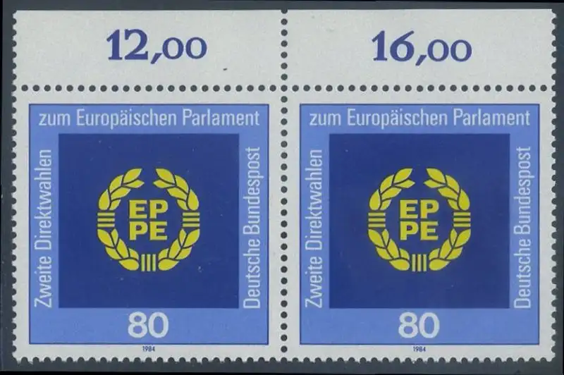 BUND 1984 Michel-Nummer 1209 postfrisch horiz.PAAR RAND oben