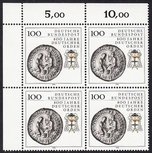 BUND 1990 Michel-Nummer 1451 postfrisch BLOCK ECKRAND oben links