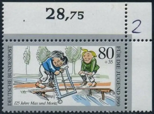 BUND 1990 Michel-Nummer 1457 postfrisch EINZELMARKE ECKRAND oben rechts
