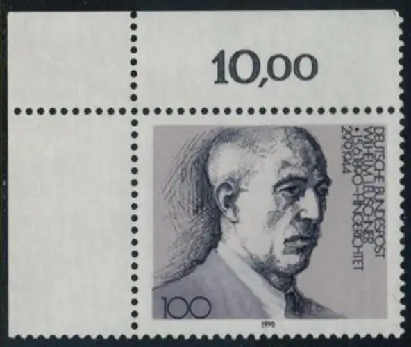 BUND 1990 Michel-Nummer 1466 postfrisch EINZELMARKE ECKRAND oben links