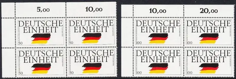 BUND 1990 Michel-Nummer 1477-1478 postfrisch SATZ(2) BLÖCKE ECKRAND oben links