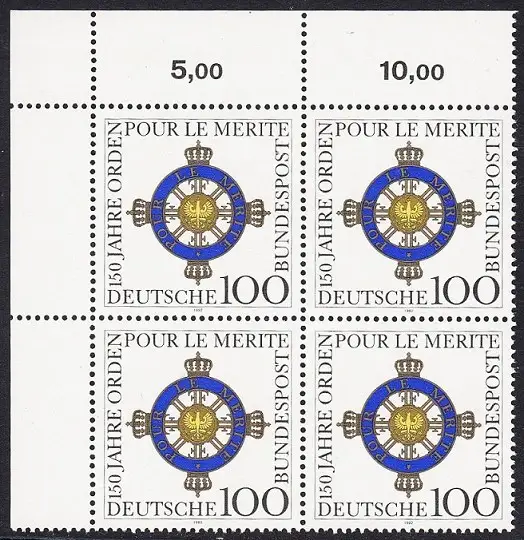 BUND 1992 Michel-Nummer 1613 postfrisch BLOCK ECKRAND oben links