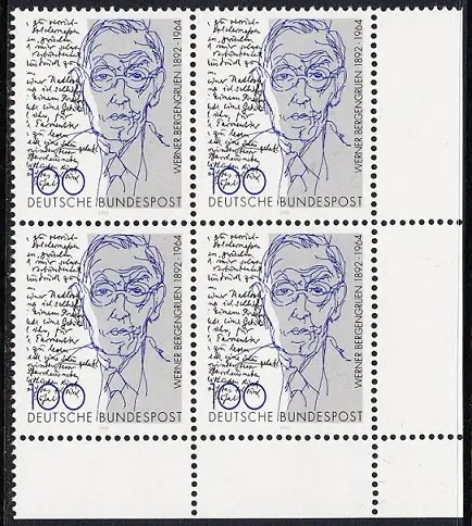 BUND 1992 Michel-Nummer 1629 postfrisch BLOCK ECKRAND unten rechts