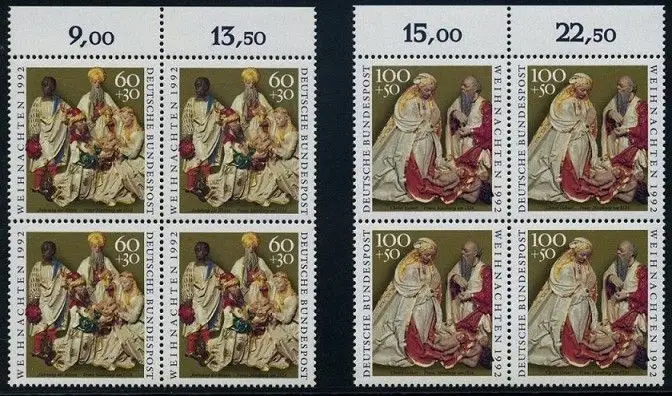 BUND 1992 Michel-Nummer 1639-1640 postfrisch SATZ(2) BLÖCKE RÄNDER oben