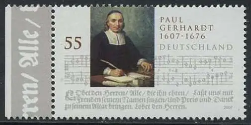 BUND 2007 Michel-Nummer 2592 postfrisch EINZELMARKE RAND links (a)