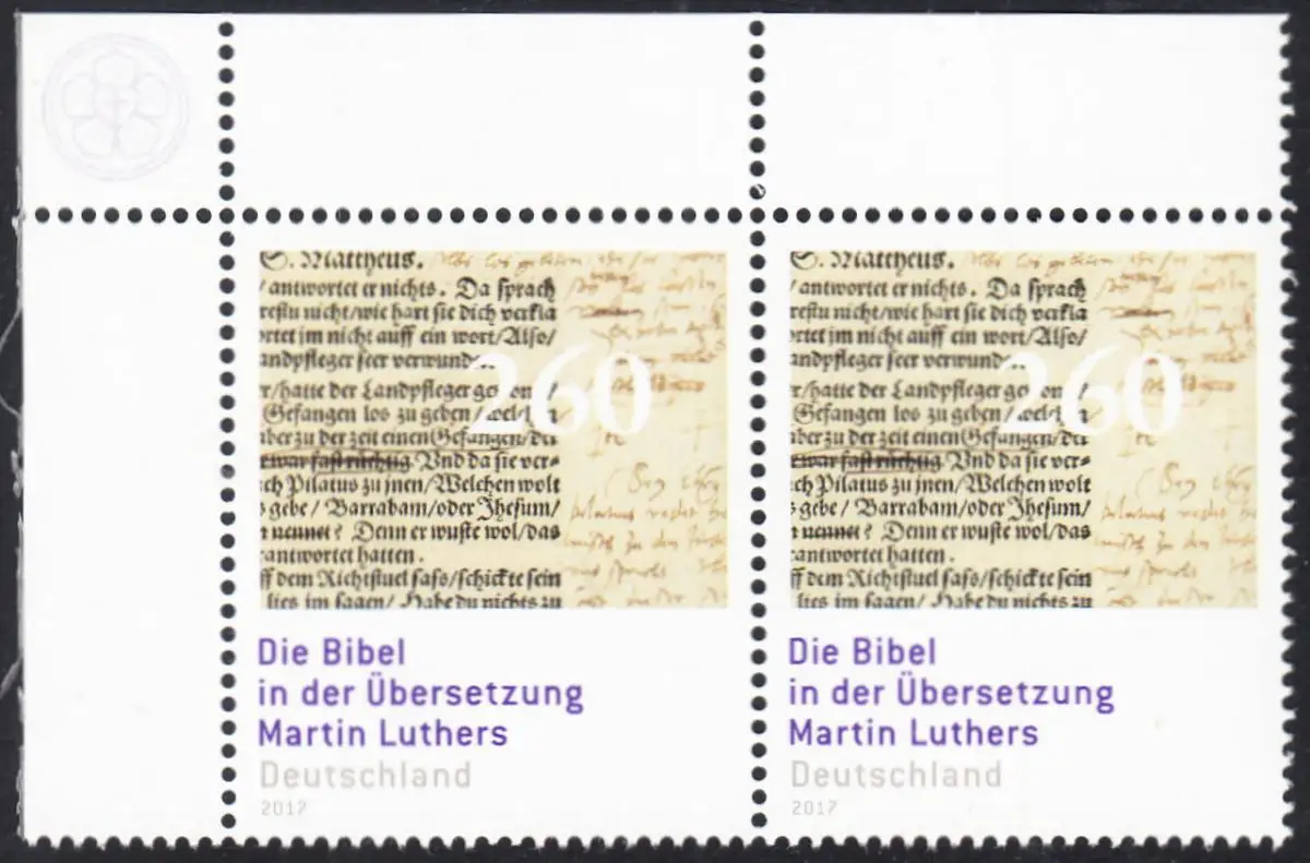BUND 2017 Michel-Nummer 3277 postfrisch horiz.PAAR ECKRAND oben links