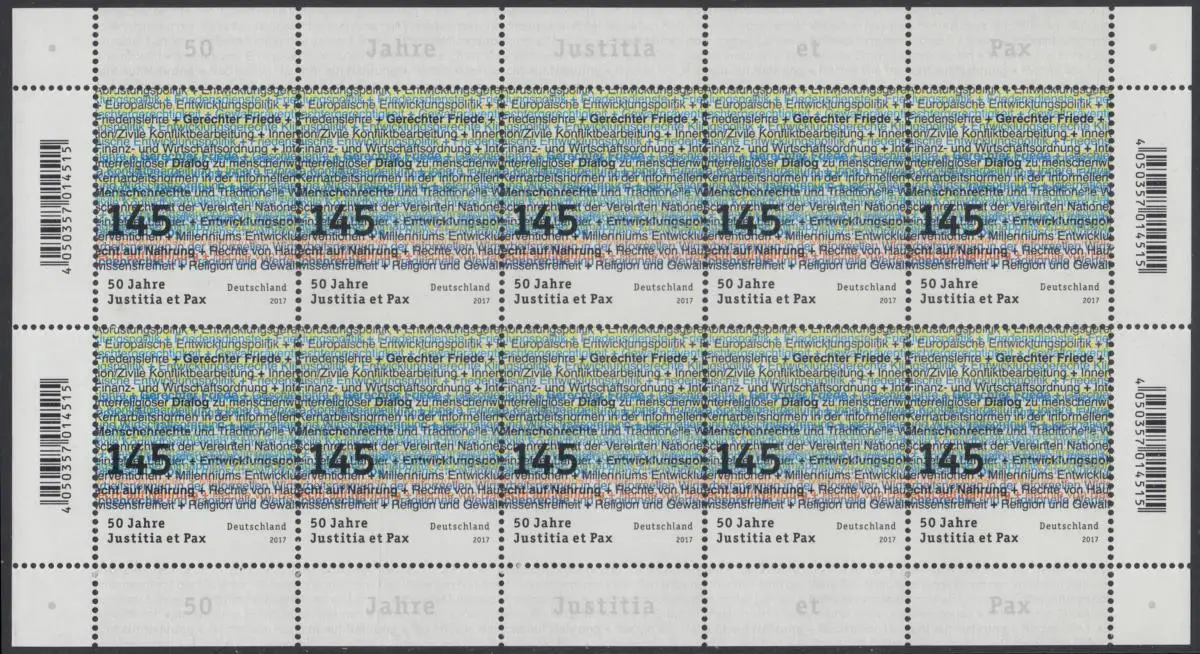 BUND 2017 Michel-Nummer 3339 postfrisch BOGEN(10)
