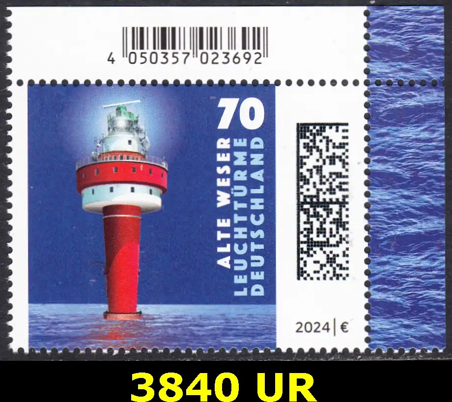 BUND 2024 Michel-# 3840 postfrisch EINZELMARKE ECKRAND oben rechts