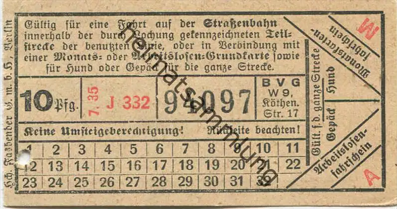 BVG Berlin Köthener Str. 17 - Fahrschein 1935