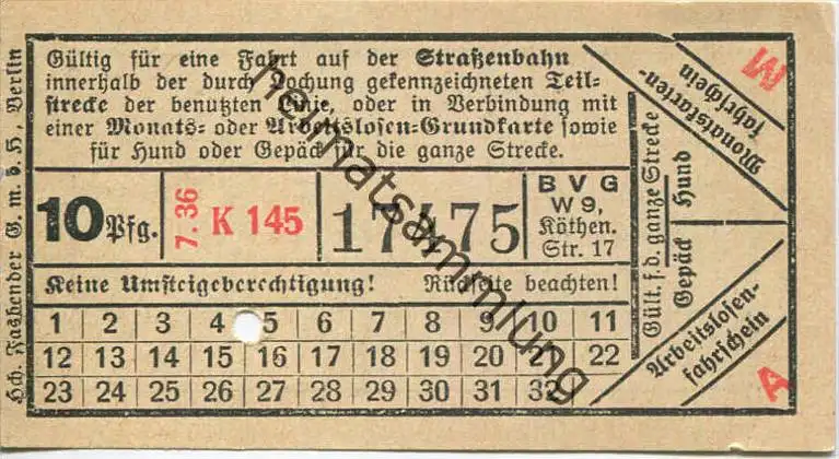 BVG Berlin Köthener Str. 17 - Fahrschein 1936 (E67876)