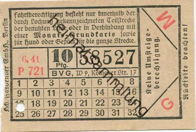 BVG Berlin Köthener Str. 17 - Fahrschein 1941 (E67883)