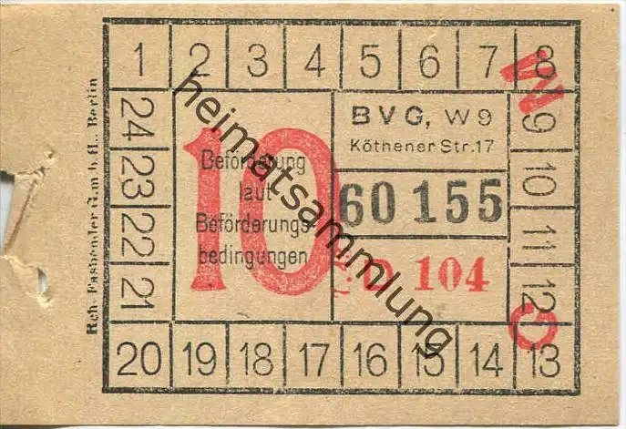 BVG Berlin Köthener Str. 17 - Fahrschein 1943 (E67834)