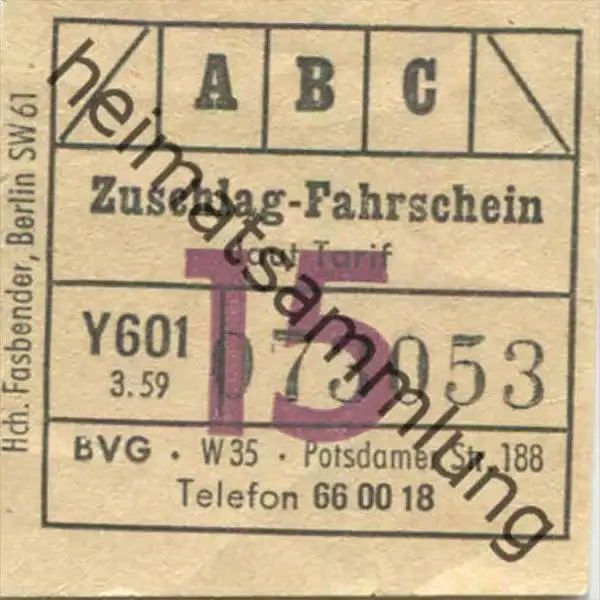 BVG - Berlin Potsdamer Str. 188 - Zuschlag-Fahrschein 1959