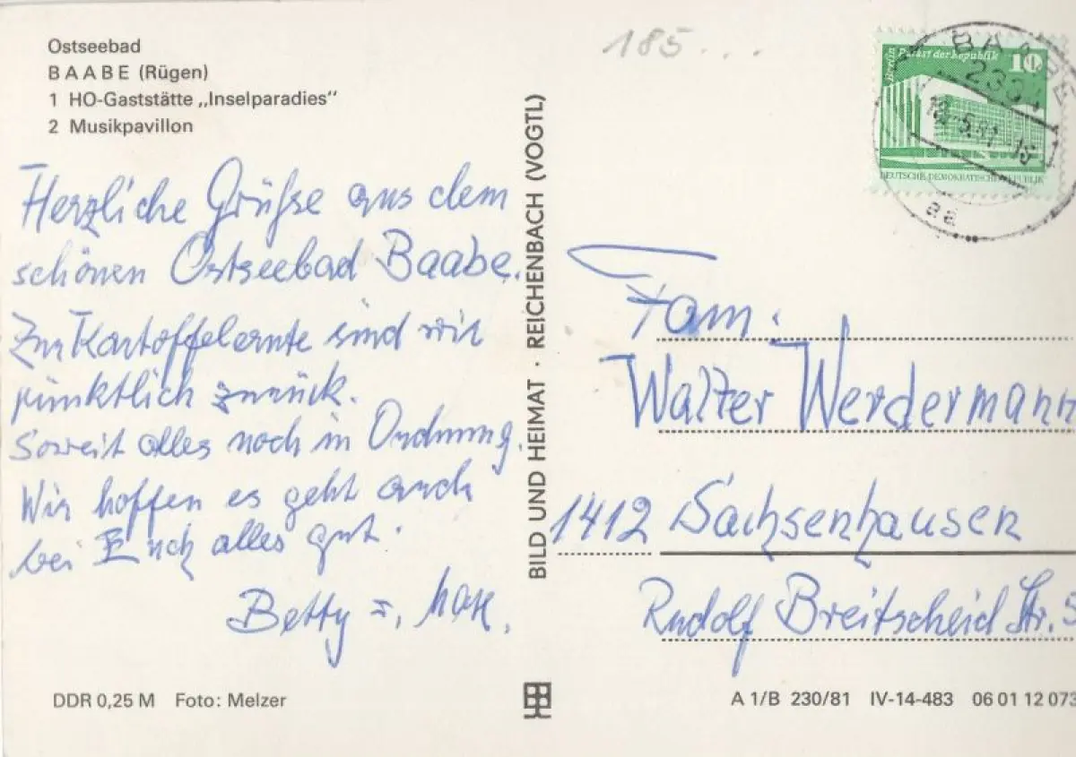 Postleitzahl:18586 (neu) / O 2334 (alt)