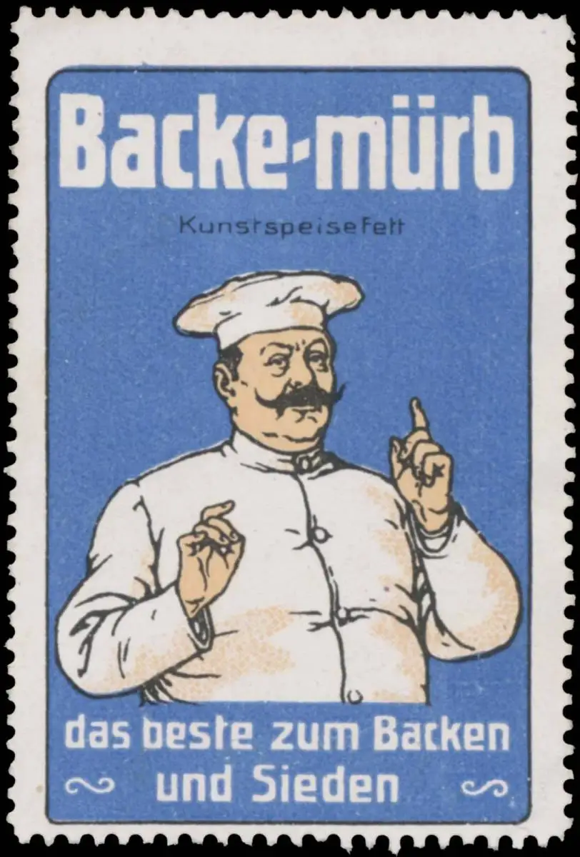 das beste zum Backen und Sieden, Koch, Größe/Zustand: 6x4 , guter Zustand, Original alte Reklamemarke die seinerzeit für die Werbung benutzt wurde