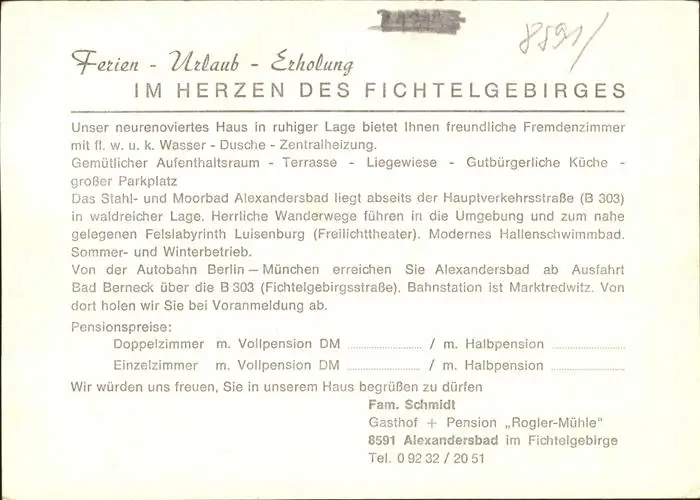 Bad Alexandersbad Pension Roglermuehle Bad Alexandersbad postalisch nicht gelaufen nach 1965 gute Erhaltung Alte Ansichtskarte Postkarte hz Cassa