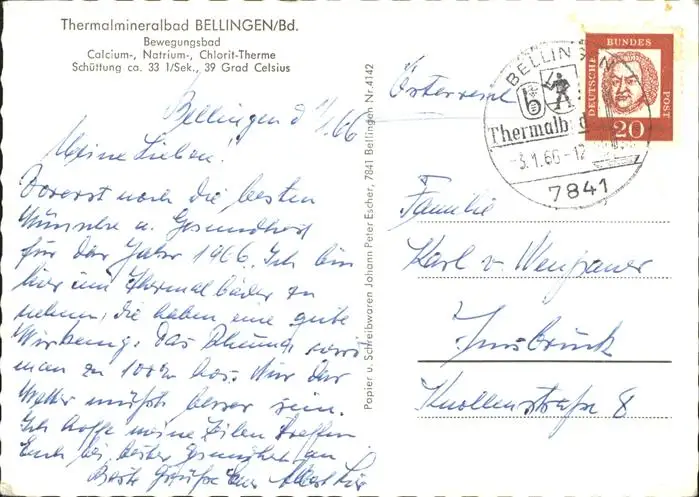 Bad Bellingen Thermalbad Bad Bellingen postalisch gelaufen 1966 gute Erhaltung Alte Ansichtskarte Postkarte Elvigtle