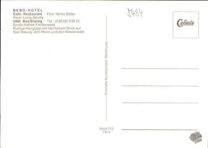 Bad Breisig Berghotel Terrasse Bad Breisig postalisch nicht gelaufen nach 1965 gute Erhaltung Alte Ansichtskarte Postkarte hz Lmann