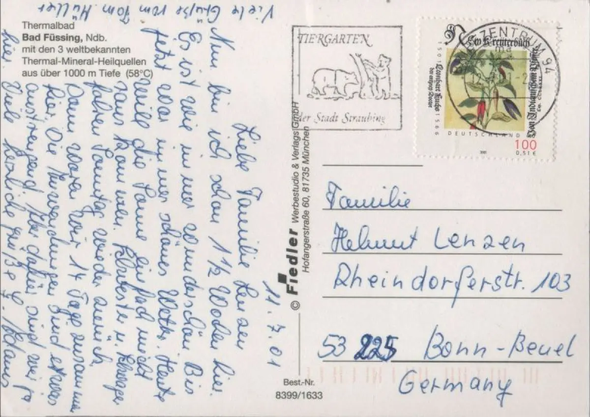 Postleitzahl:94072 (neu) / W 8399 (alt)