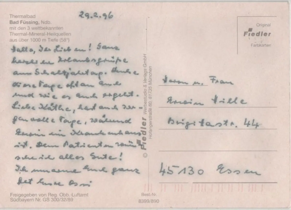 Postleitzahl:94072 (neu) / W 8399 (alt)