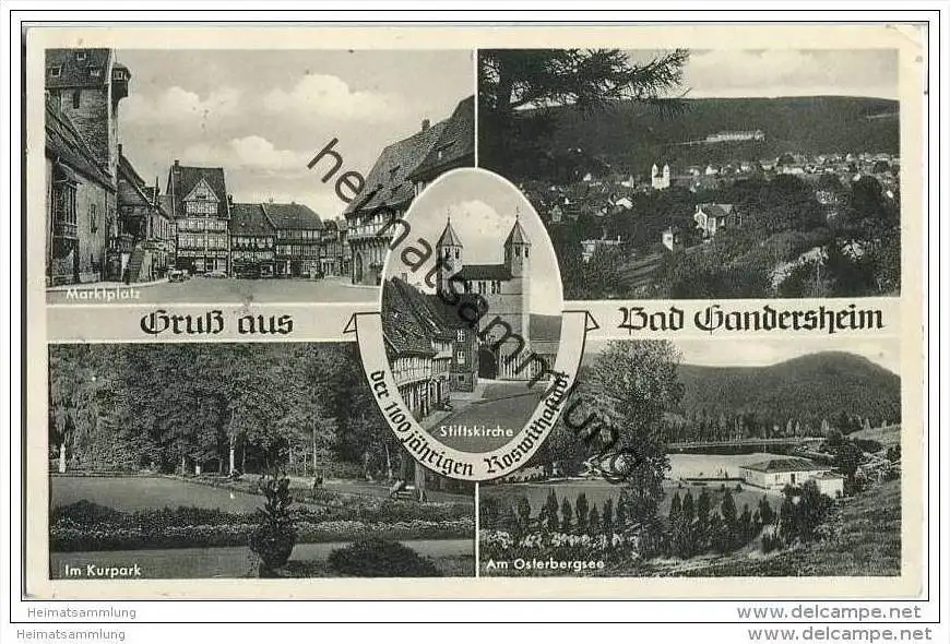 Bad Gandersheim - Osterbergsee - Marktplatz - Bahnpost - Verlag Carl Thoericht Hann. Münden - Gebrauchsspuren (G24481) gel. 1954
