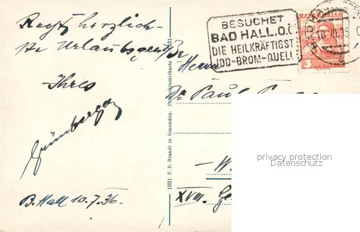 Bad Hall Oberoesterreich Ansicht vom Waldrand aus Bad Hall postalisch gelaufen 1936 Erhaltung siehe scans [FriedD77] Frierer