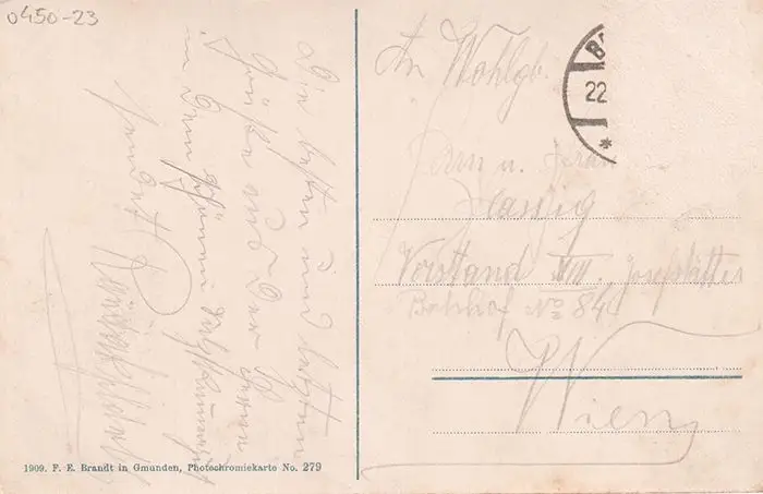 Bemerkungen: Gelaufen Bad Ischl - Wien. Marke entfernt.