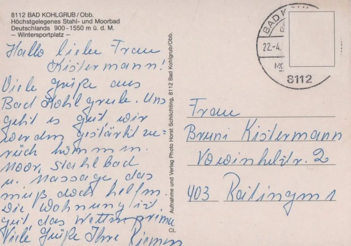 Postleitzahl:82433 (neu) / W 8112 (alt)