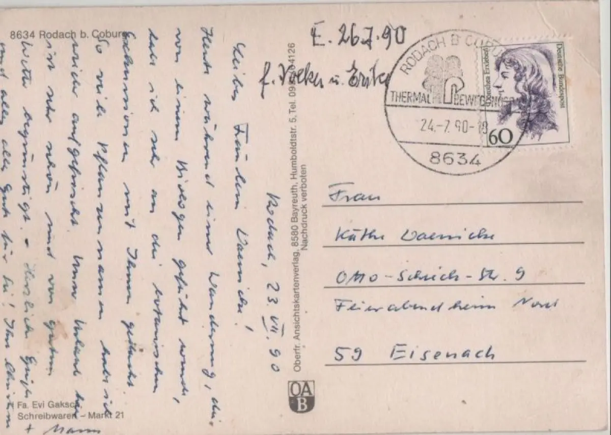 Postleitzahl:96476 (neu) / W 8634 (alt)