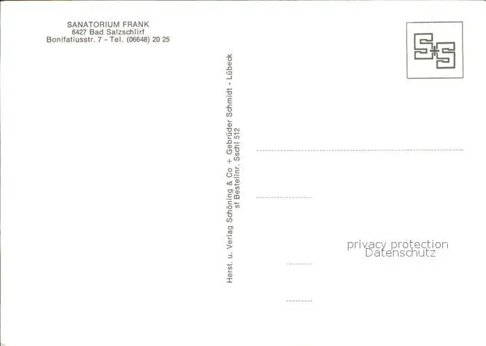 Bad Salzschlirf Sanatorium Frank Bad Salzschlirf postalisch nicht gelaufen nach 1965 Erhaltung siehe scans [NatalD47] NataID47