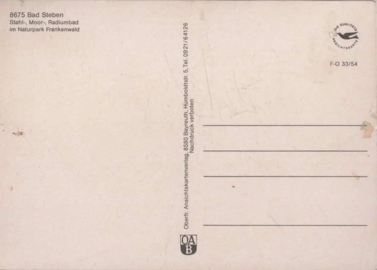 Postleitzahl:95138 (neu) / W 8675 (alt)