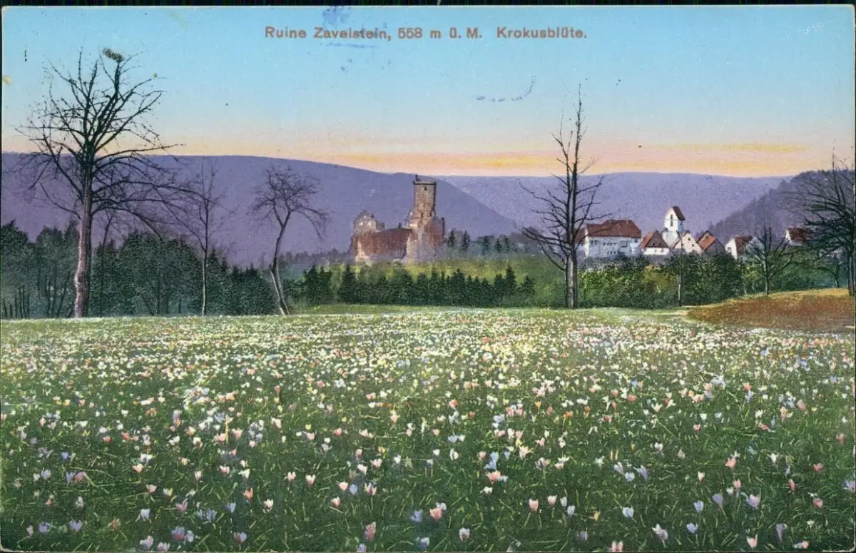 Bad Teinach-Zavelstein Ruine Krokusblüte 1910 Landpoststempel "Z Calw"