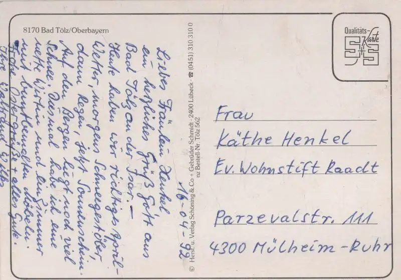 Ich hatte die Rechnung sofort als Vorkasse bezahlt, aber keine Zusendung der Karte erhalten. Trotz Nachfrage keine Rückmeldung bzw. Erklärung. Da es sich zum Glück nur um 1,70 € handelt, ist die Sache für mich erledigt, ärgerlich, aber zu verkraften. Mit den drei anderen Karten, die ich bestellt hatte, hat alles wunderbar geklappt.