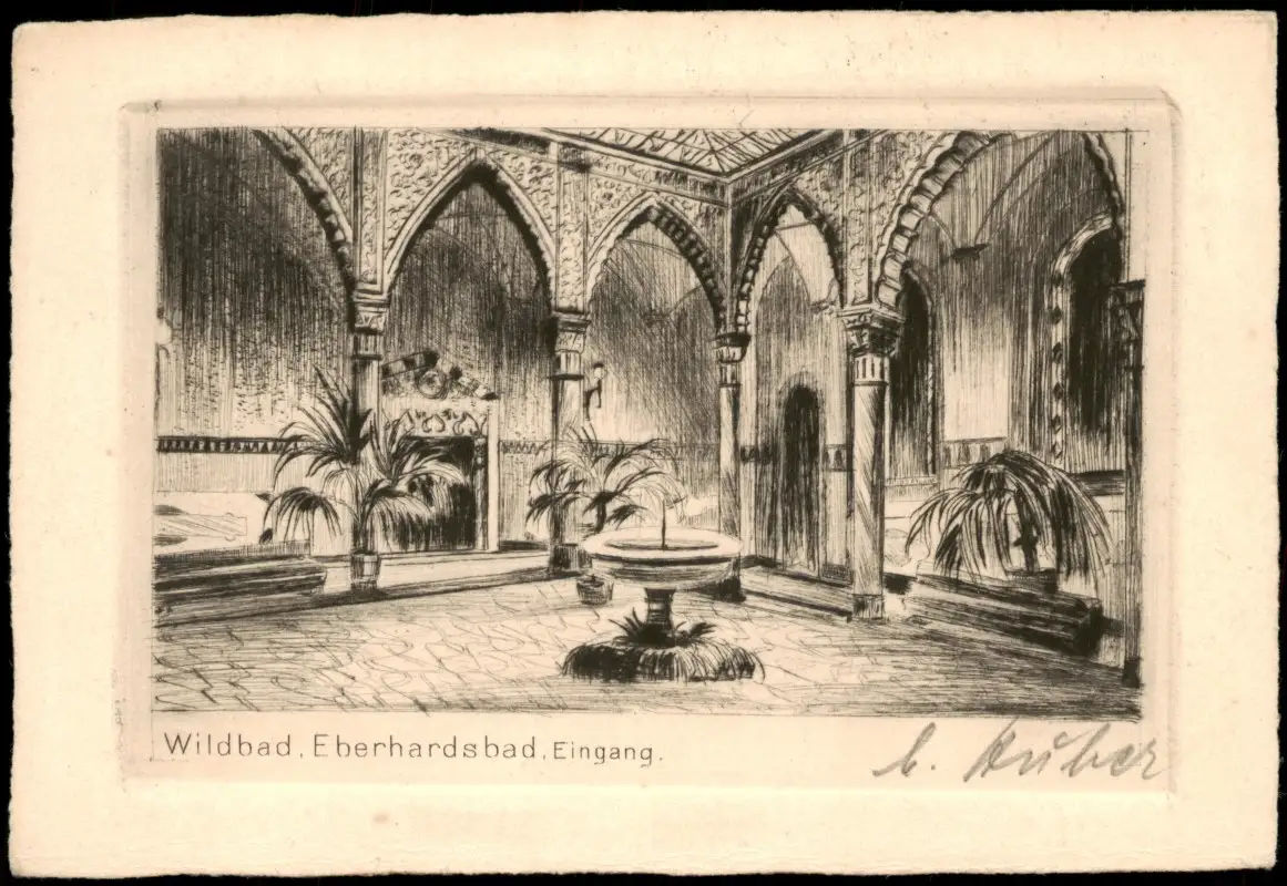 Bad Wildbad Eberhards bad. Eingang. - Radierung original Signatur 1928