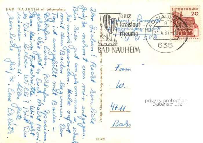 Bad_Nauheim mit Johannesberg Bad_Nauheim postalisch gelaufen 1967 Erhaltung siehe scans [LiesaD40] LiesID40